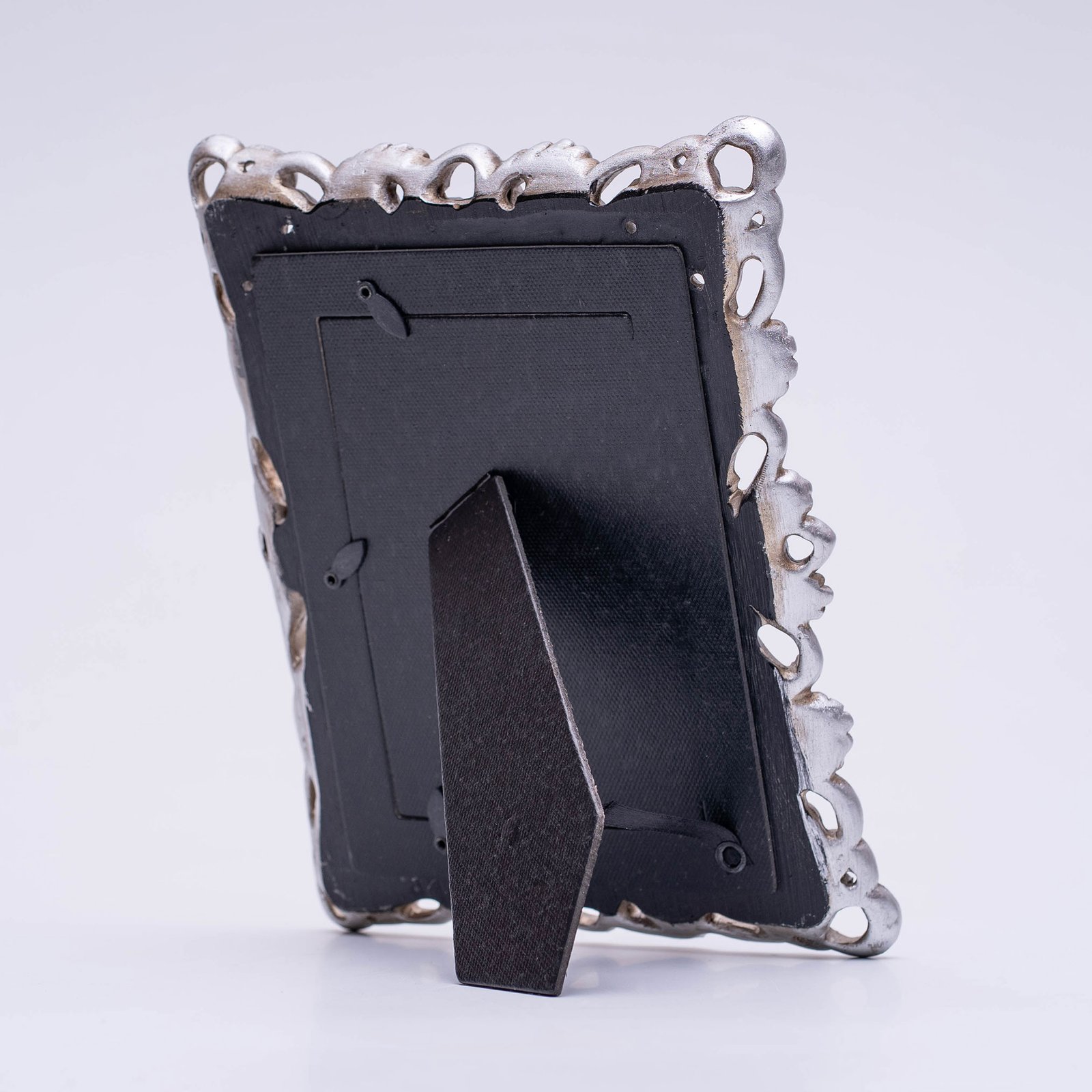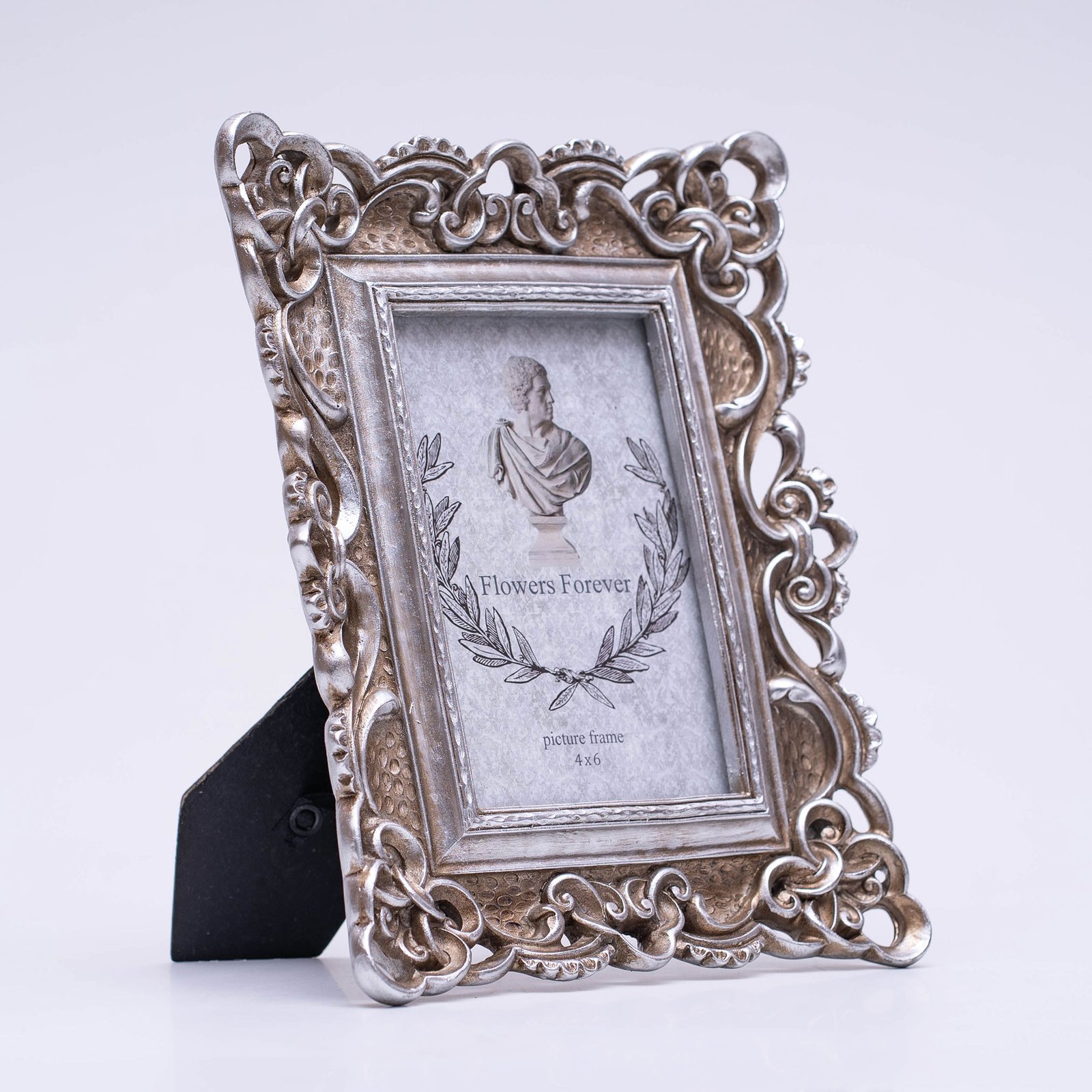 Enhance your living space with the timeless charm of this Burnish Silver Vintage 4×6 Inches Tabletop Photo Frame, designed to beautifully display your most cherished memories. Crafted from high-quality resin, the frame features intricate decorative scrollwork finished in a rich burnished silver tone, bringing classic elegance and sophistication to any decoration setting.