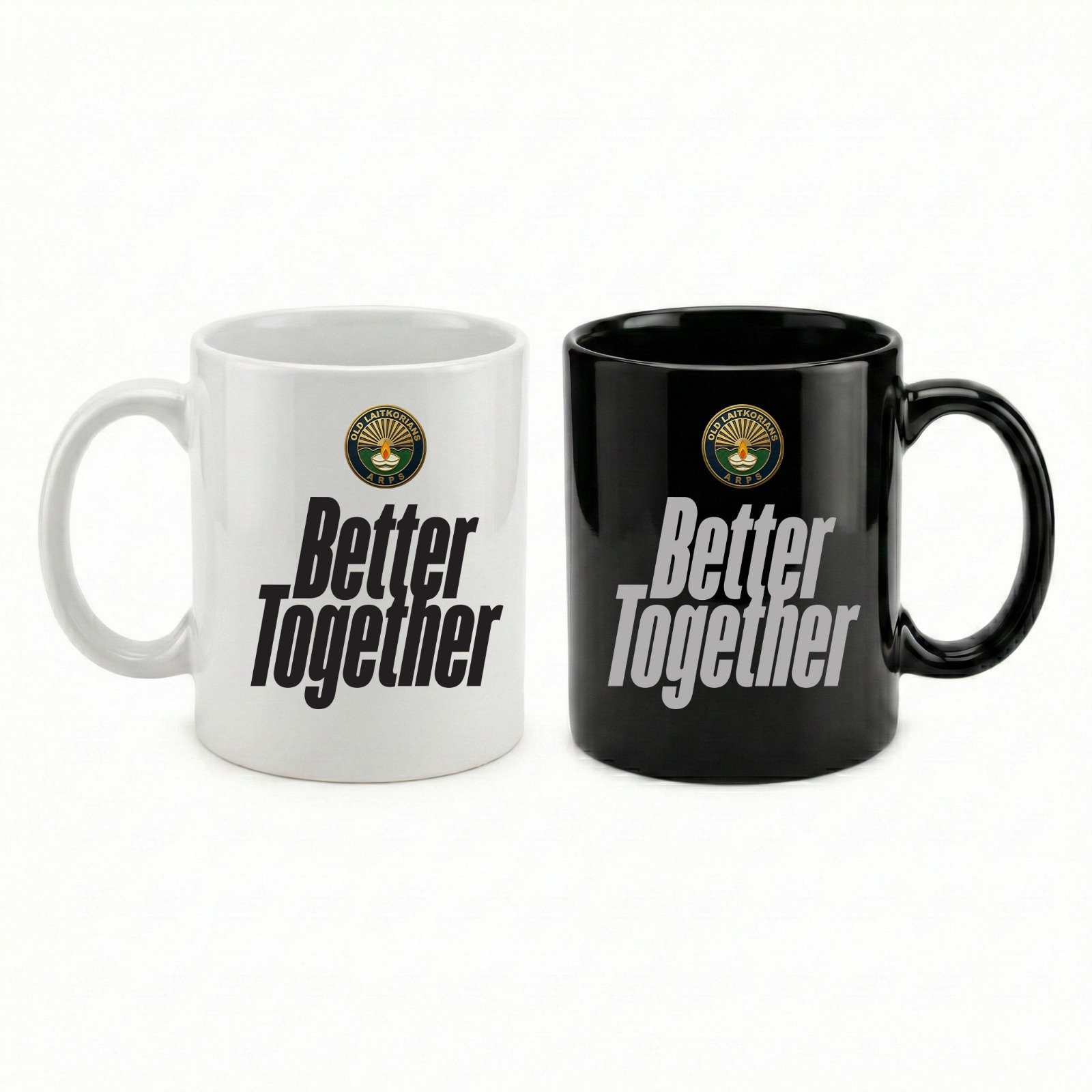 Premium white ceramic mug featuring bold “Better Together” print. Perfect for coffee, tea, or gifting. Durable, glossy finish and comfortable handle for daily use.